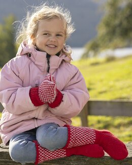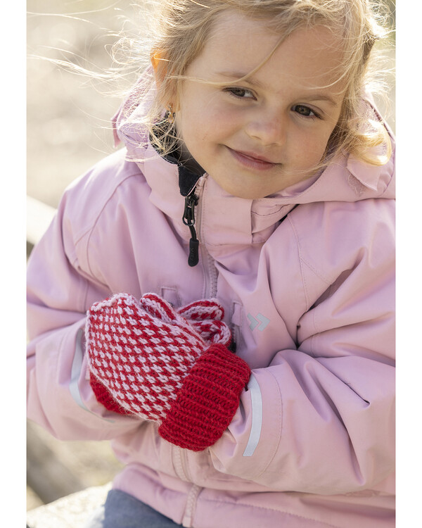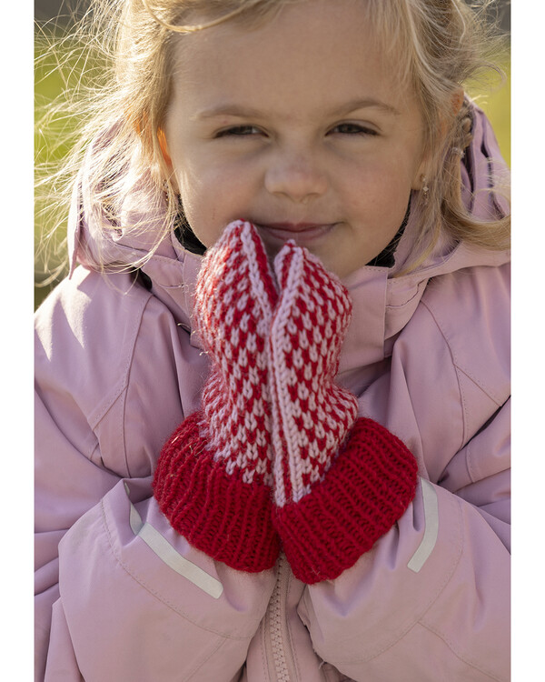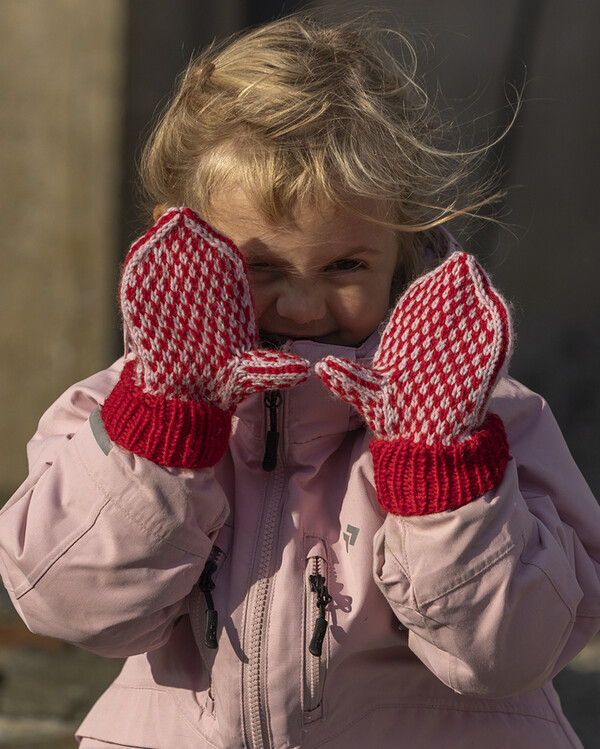 Et par fine strikkede vanter til børn – varme, bløde og fulde af charme. De holder små hænder varme under leg i sneen og...