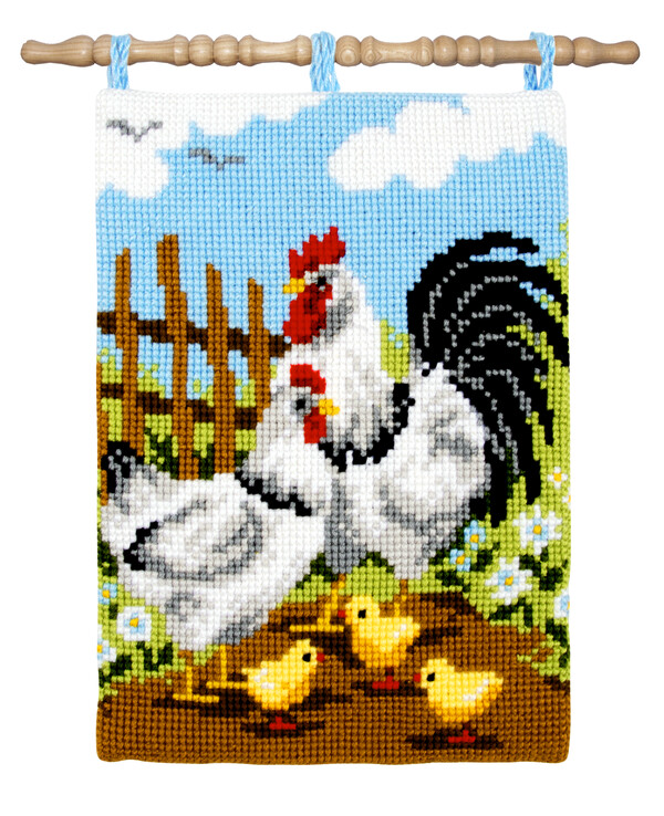 Broderes med akrylgarn i korssting påtrykt groft stramaj. Str. ca. 40x53 cm....