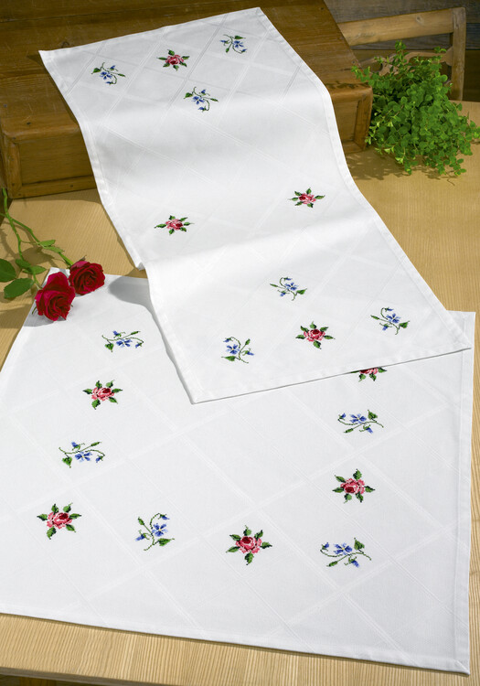 Broderier > Broderier til børneværelset > Dug Roser og violer